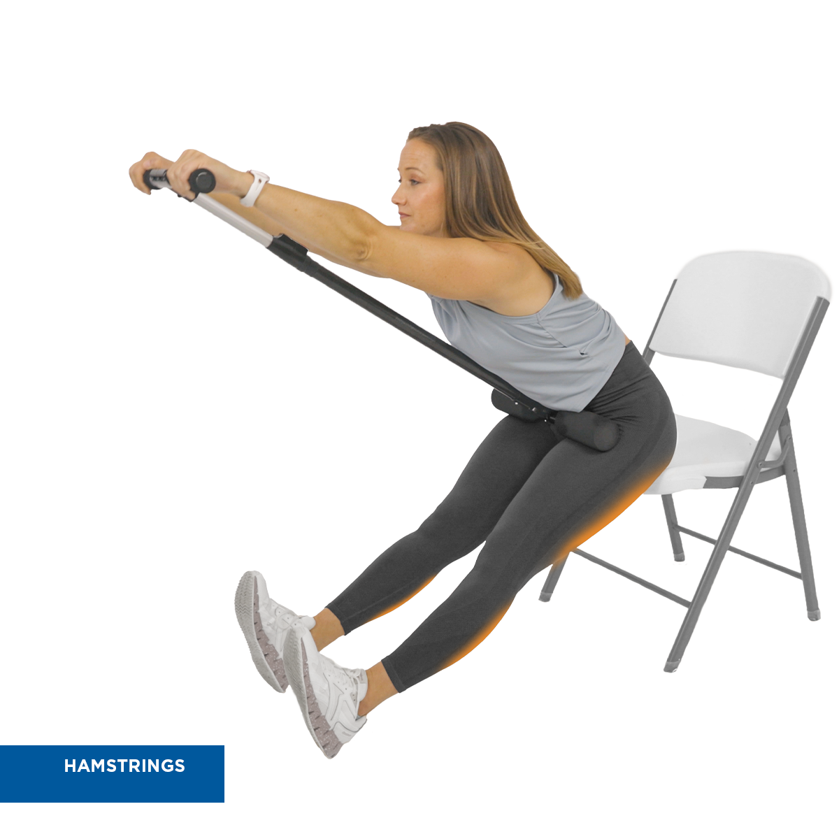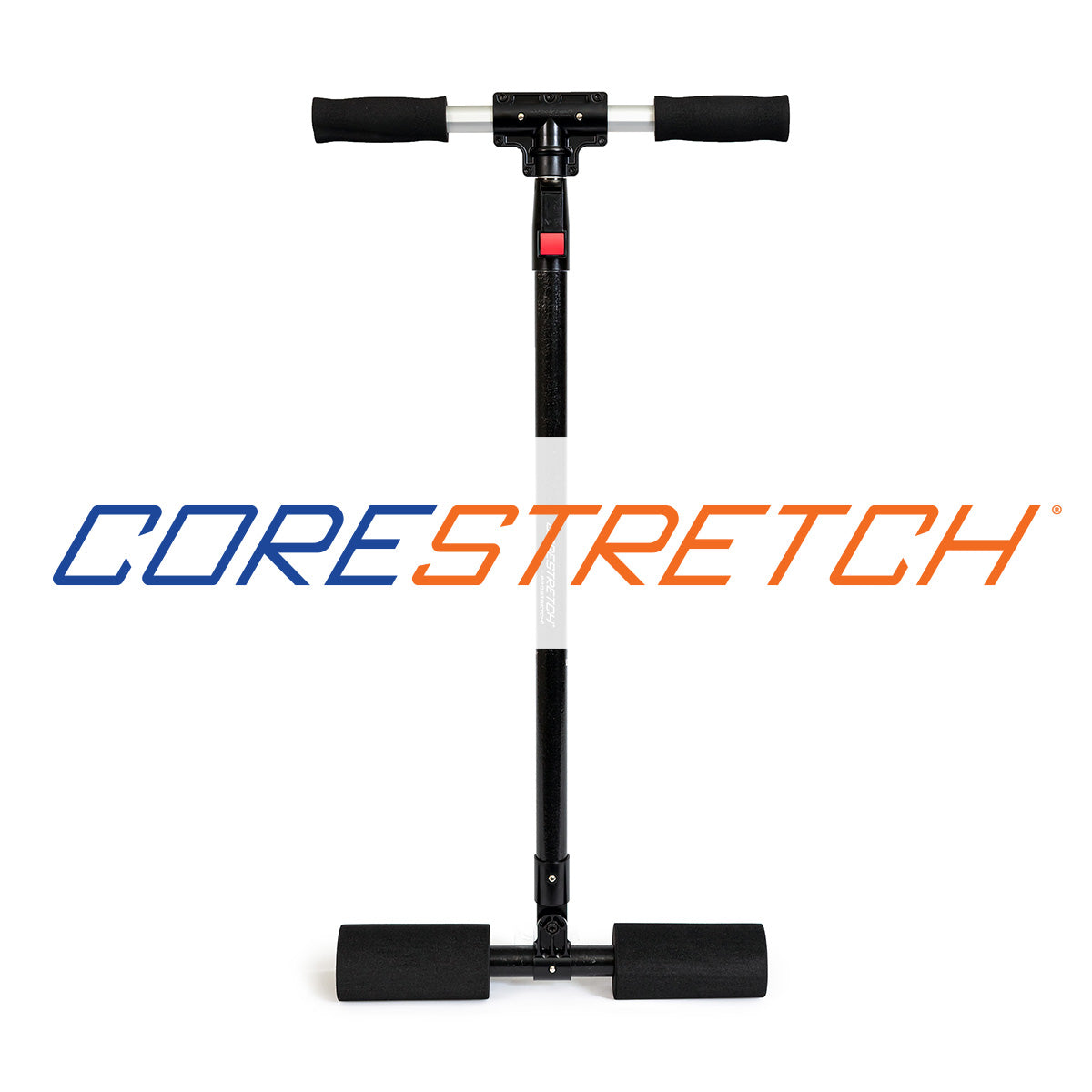 The CoreStretch is designed to stretch the back, hamstrings, and hips by focusing on the core of the body, creating leverage between the upper and lower body for a full-body stretch that enhances flexibility and range of motion.